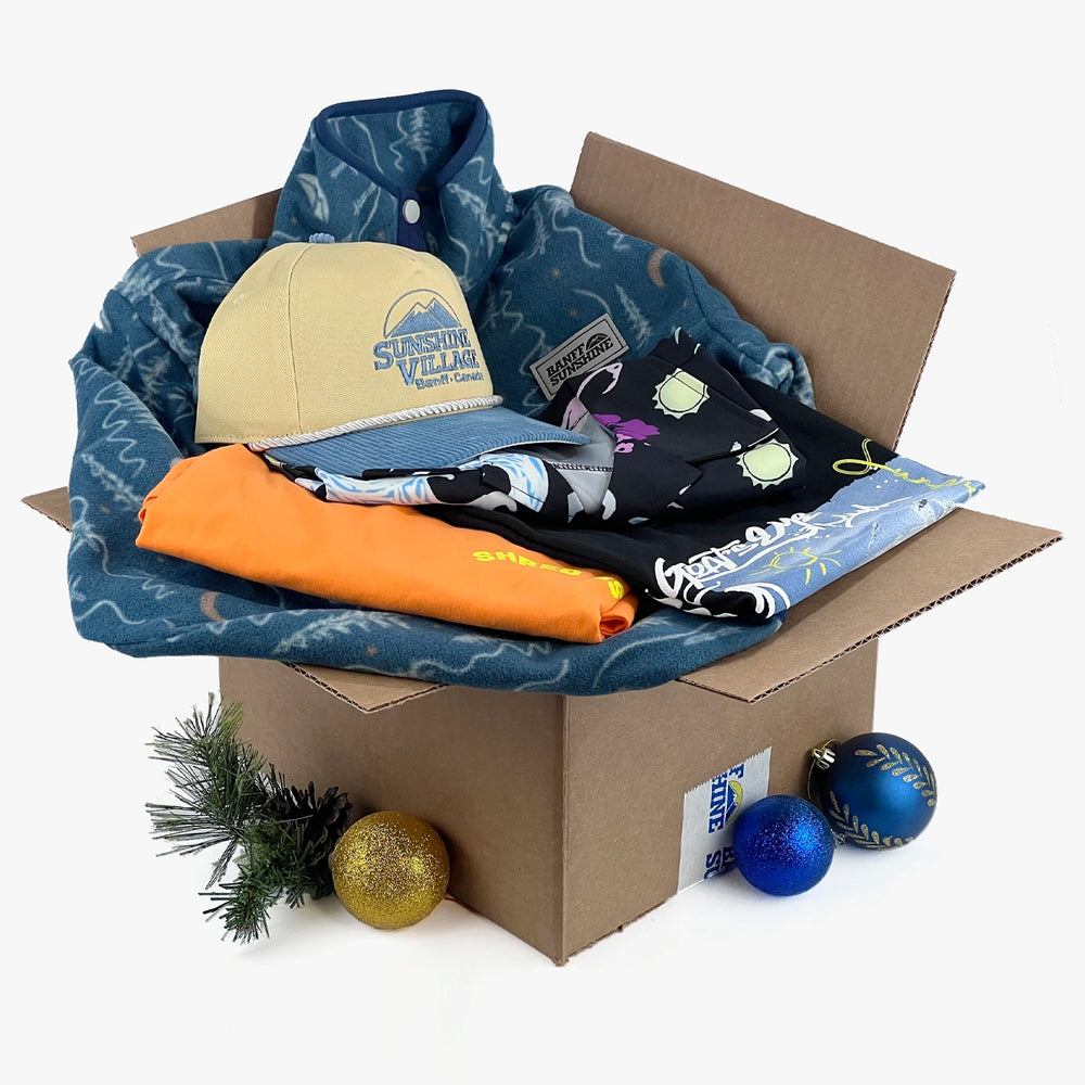 Update your wardrobe this winter with a Sunshine Village Mystery Box! Just order your usual size, and you'll get 5 mystery items selected and packaged by our own Sunshine Village team. The contents of each mystery box have a total retail value of $250 and are 50% off!